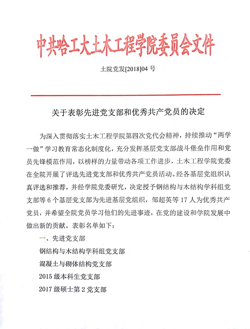 关于表彰先进党支部和优秀共产党的决定