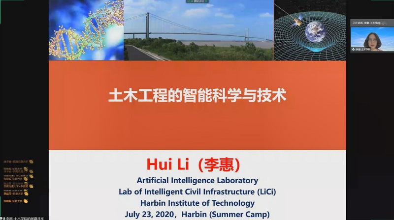 在开营仪式的最后李惠教授为同学们做了题为“土木工程智能科学与技术”的学术前沿报告。她首先简要介绍了人工智能的历史和原理,然后系统介绍了土木工程智能科学与技术在材料、设计、建造和运维等方面的研究与应用情况,并对土木工程领域未来发展的重要方向进行了展望。讲座结束后,营员们纷纷在云端鼓掌感谢李惠教授的精彩讲座并表示收获颇丰。上午的开营仪式在热烈的气氛中结束。